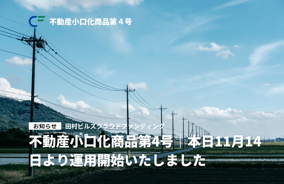 弊社が提供する田村ビルズクラウドファンディングの不動産小口化商品「ぶちええ山口4号ファンド」を本日11月14日より運用開始いたしました。運用期間は2025年2月13日(火)までの92日間です。