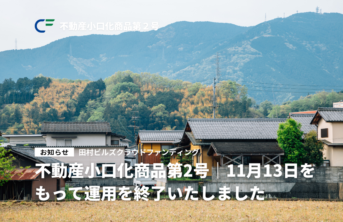 不動産小口化商品の「ぶちええ山口2号ファンド」は、予定通り2024年11月13日(水)をもって運用終了したことをお知らせいたします。
