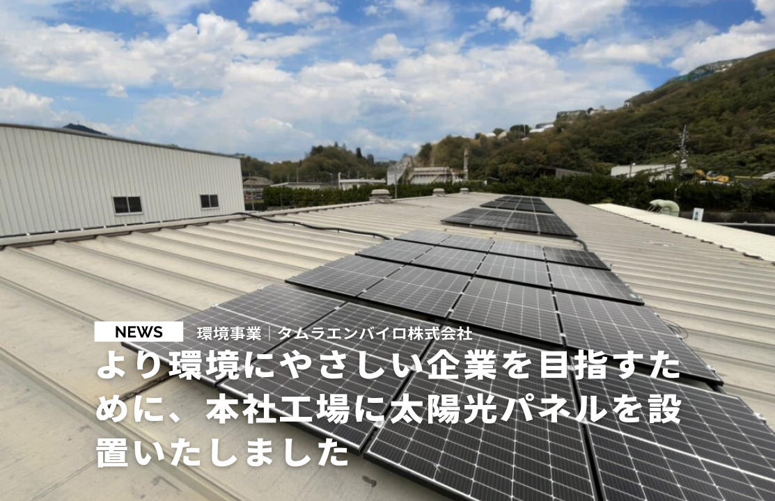 このたび、より環境にやさしい企業を目指すため、本社工場屋根に太陽光パネルを設置いたしました。