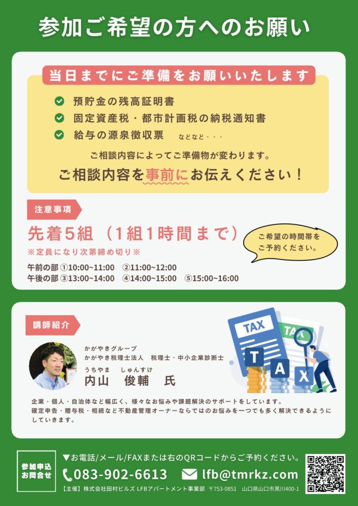 参加申込・お問合せ:TEL 083-902-6613 / MAIL lfb@tmrkz.com