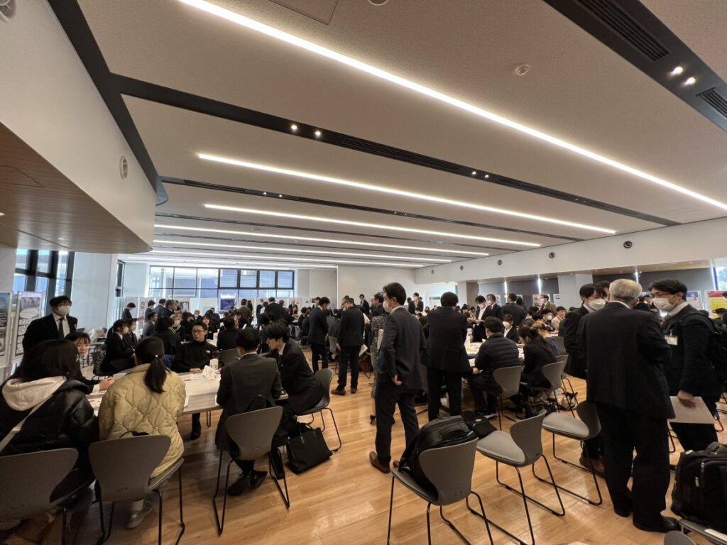 県立大だけでなく、山口大学、山口学芸大学も参加。三大学およそ100人の学生と40の企業が集まりました。