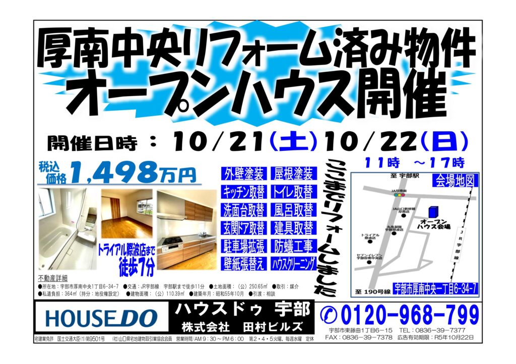 \\ 本日は宇部市厚南中央のリフォーム済み物件完成見学会のお知らせです。//
