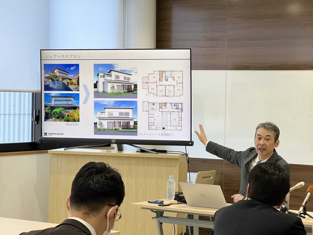 記者会見で発表した内容は山口県立大学の学生とともに進めている「未来に紡ぐ・山口市大殿地区活性化プロジェクト~資産形成で社会貢献。あなたの投資は、あなたの資産とより良い社会を作る。~」というプロジェクトの計画です。大殿地区の空き家を1棟改修して、外国人留学生などの学生寮として整備します。